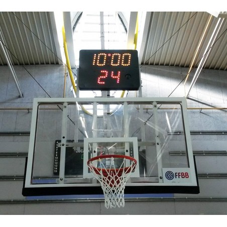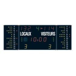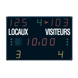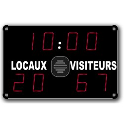 Panneau d'affichage des scores. Selon la pratique sportive et le niveau de jeu, chaque club à l’obligation de respecter des normes d’affichage, conformes au règlement du sport concerné.